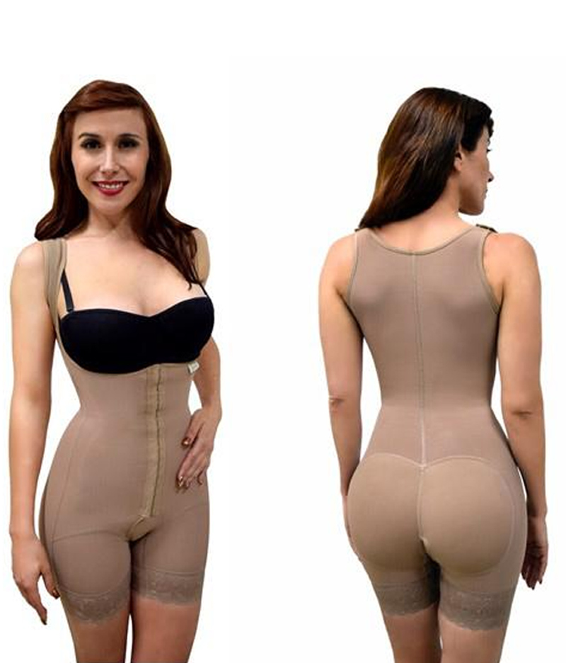 Ajuste de todo el cuerpo, realza el busto y controla la cintura y cadera, proyecta el glúteo hacia arriba, dándole volumen y soporte aprovechando el tejido adiposo de la cadera.